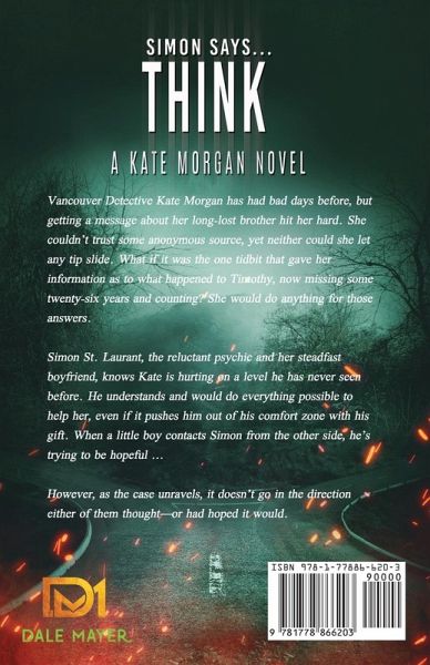 Vancouver Detective Kate Morgan has had bad days before, but getting a message about her long-lost brother hit her hard. She couldn't trust some anonymous source, yet neither could she let any tip slide. What if it was the one tidbit that gave her information as to what happened to Timothy, now missing some twenty-six years and counting? She would do anything for those answers. Simon St. Laurant, the reluctant psychic and her steadfast boyfriend, knows Kate is hurting on a level he has never seen before. He understands and would do everything possible to help her, even if it pushes him out of his comfort zone with his gift. When a little boy contacts Simon from the other side, he's trying to be hopeful ... However, as the case unravels, it doesn't go in the direction either of them thought-or had hoped it would.