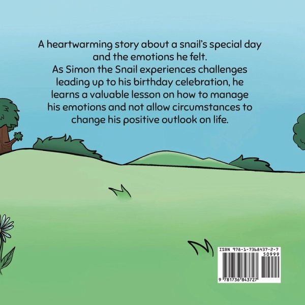 A heartwarming story about a snail's special day and the emotions he felt. As Simon the Snail experiences challenges leading up to his birthday celebration, he learns a valuable lesson on how to manage his emotions and not allow circumstances to change his positive outlook on life.