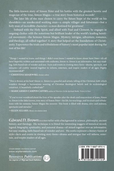 The little-known story of Simon Peter and his battles with the greatest heretic and magician of the time, Simon Magus--a true story from historical records! The later life of the man chosen to carry the future hope of the world on his shoulders--an uneducated working man--a simple villager and fisherman--but a holy man of incredible character--a man destined for greatness! Imbued with the Holy Spirit, and allied with Paul and Clement, he engages in ongoing clashes with the notorious but brilliant leader of the world's leading heretical movement--the heinous Simon Magus. Mystery, intrigue, adventure, romance, and theology, all rolled together! A story that helped set the foundations of Christianity. Experience the trials and tribulations of history's most popular saint during the rest of his life!