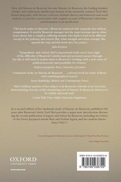 For the second edition of her landmark study of Simone de Beauvoir, Toril Moi provides a major new introduction discussing current developments in Beauvoir studies as well as the recent publication of papers and letters by Beauvoir, including her letters to her lovers Jacques-Laurent Bost and Nelson Agren, and her student diaries from 1926-7.