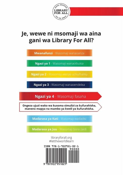 Simone feels a lot of different emotions when she fails a musical audition. With the help of her family and friends, she learns¿to be wise, patient, and have the courage to stick to her dreams. Maria anahisi hisia nyingi tofauti anapokosa kufaulu katika jaribio la uimbaji. Kwa usaidizi wa familia yake na marafiki zake, anajifunza kuwa mwenye busara, mwenye subira na kuwa na ujasiri wa kushikilia ndoto zake. Your purchase of this book supports Library For All in its mission to make knowledge available to all, equally.