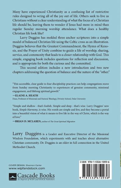 Many have experienced Christianity as a confusing list of restrictive rules designed to wring all of the joy out of life. Others seek to live as Christians without a clear understanding of what the focus of a Christian life should be, leaving them to wonder if Jesus had more in mind than regular Sunday morning worship attendance. What does a healthy Christian life look like? Larry Duggins has molded three anchor scriptures into a simple model of balanced Christian life using the Celtic cross as an illustration. Duggins believes that the Greatest Commandment, the Hymn of Kenosis, and the Prayer of Unity combine to guide a life of worship, sharing, service, and community that leads to a closer relationship with God. This simple, engaging book includes questions for reflection and discussion, and is appropriate for both the curious and the committed. This second edition includes a new introduction and two new chapters addressing the question of balance and the nature of the ""other.""
