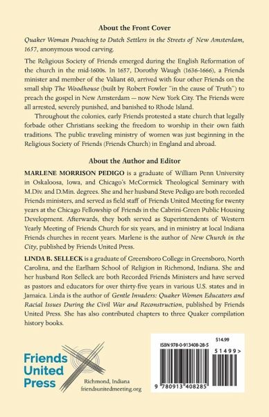 Author Marlene Pedigo considers faithful women ministers, from the Bible through the history of Friends (Quakers) to her own experience. She considers the spiritual practices and development of a minister, various roles and tasks of ministry, and provides examples of times when women fulfilling these tasks have improved the lives of others, have strengthened the church, and have increased the strength and faithfulness of the Friends church.