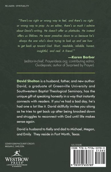"There''s no right or wrong way to feel, and there''s no right or wrong way to pray. As an editor, there's so much I admire about David's writing. He doesn't offer us platitudes. He instead offers us lifelines. He never preaches down to us because he''s always the one who''s down trying to look up and see how to get back up toward God. Short, readable, reliable, honest, insightful, and real. A friend." -Karen Barber (editor-in-chief, Prayerideas.org; contributing editor, Guideposts; author of Surprised by Prayer).