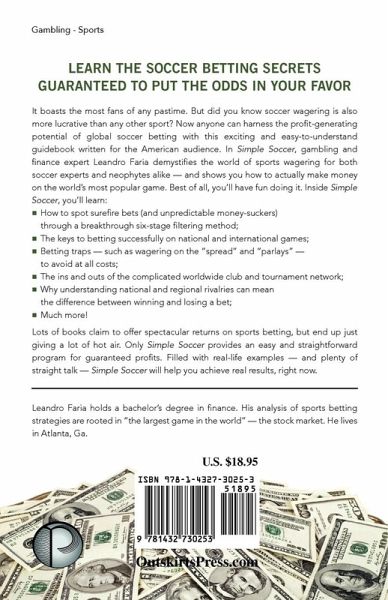 LEARN THE SOCCER BETTING SECRETS GUARANTEED TO PUT THE ODDS IN YOUR FAVOR It boasts the most fans of any pastime. But did you know soccer wagering is also more lucrative than any other sport? Now anyone can harness the profit-generating potential of global soccer betting with this exciting and easy-to-understand guidebook written for the American audience. In Simple Soccer, gambling and finance expert Leandro Faria demystifies the world of sports wagering for both soccer experts and neophytes alike - and shows you how to actually make money on the world's most popular game. Best of all, you'll have fun doing it. Inside Simple Soccer, you'll learn: - How to spot surefire bets (and unpredictable money-suckers) through a breakthrough six-stage filtering method; - The keys to betting successfully on national and international games; - Betting traps - such as wagering on the "spread" and "parlays" - to avoid at all costs; - The ins and outs of the complicated worldwide club and tournament network; - Why understanding national and regional rivalries can mean the difference between winning and losing a bet; - Much more! Lots of books claim to offer spectacular returns on sports betting, but end up just giving a lot of hot air. Only Simple Soccer provides an easy and straightforward program for guaranteed profits. Filled with real-life examples - and plenty of straight talk - Simple Soccer will help you achieve real results, right now.