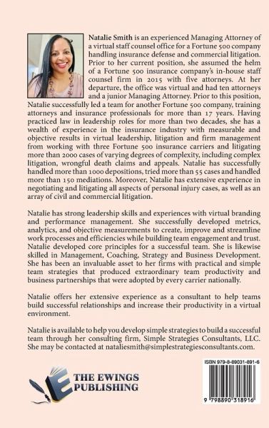 Natalie Smith is an experienced Managing Attorney of a virtual staff counsel office for a Fortune 500 company handling insurance defense and commercial litigation. Prior to her current position, she assumed the helm of a Fortune 500 insurance company's in-house staff counsel firm in 2015 with five attorneys. At her departure, the office was virtual and had ten attorneys and a junior Managing Attorney. Prior to this position, Natalie successfully led a team for another Fortune 500 company, training attorneys and insurance professionals for more than 17 years. Having practiced law in leadership roles for more than two decades, she has a wealth of experience in the insurance industry with measurable and objective results in virtual leadership, litigation and firm management from working with three Fortune 500 insurance carriers and litigating more than 2000 cases of varying degrees of complexity, including complex litigation, wrongful death claims and appeals. Natalie has successfully handled more than 1000 depositions, tried more than 55 cases and handled more than 150 mediations. Moreover, Natalie has extensive experience in negotiating and litigating all aspects of personal injury cases, as well as an array of civil and commercial litigation. Natalie has strong leadership skills and experiences with virtual branding and performance management. She successfully developed metrics, analytics, and objective measurements to create, improve and streamline work processes and efficiencies while building team engagement and trust. Natalie developed core principles for a successful team. She is likewise skilled in Management, Coaching, Strategy and Business Development. She has been an invaluable asset to her firms with practical and simple team strategies that produced extraordinary team productivity and business partnerships that were adopted by every carrier nationally. Natalie offers her extensive experience as a consultant to help teams build successful relationships and increase their productivity in a virtual environment. Natalie is available to help you develop simple strategies to build a successful team through her consulting firm, Simple Strategies Consultants, LLC.