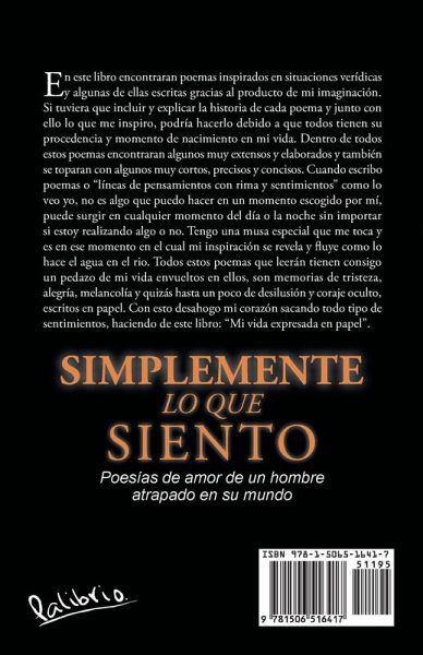 En este libro encontraran poemas inspirados en situaciones verídicas y algunas de ellas escritas gracias al producto de mi imaginación. Si tuviera que incluir y explicar la historia de cada poema y junto con ello lo que me inspiro, podría hacerlo debido a que todos tienen su procedencia y momento de nacimiento en mi vida. Dentro de todos estos poemas encontraran algunos muy extensos y elaborados y también se toparan con algunos muy cortos, precisos y concisos. Cuando escribo poemas o "líneas de pensamientos con rima y sentimientos" como lo veo yo, no es algo que puedo hacer en un momento escogido por mí, puede surgir en cualquier momento del día o la noche sin importar si estoy realizando algo o no. Tengo una musa especial que me toca y es en ese momento en el cual mi inspiración se revela y fluye como lo hace el agua en el rio. Todos estos poemas que leerán tienen consigo un pedazo de mi vida envueltos en ellos, son memorias de tristeza, alegría, melancolía y quizás hasta un poco de desilusión y coraje oculto, escritos en papel. Con esto desahogo mi corazón sacando todo tipo de sentimientos, haciendo de este libro: "Mi vida expresada en papel".
