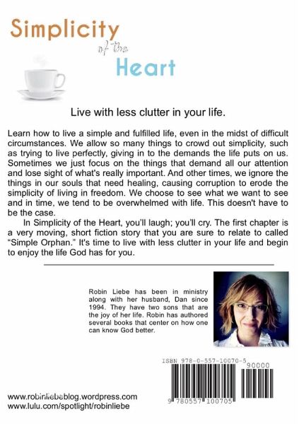 Live with less clutter in your life. Learn how to live a simple and fulfilled life, even in the midst of difficult circumstances. We allow so many things to crowd out simplicity, such as trying to live perfectly, giving in to the demands the life puts on us. Sometimes we just focus on the things that demand all our attention and lose sight of what's really important. And other times, we ignore the things in our souls that need healing, causing corruption to erode the simplicity of living in freedom. We choose to see what we want to see and in time, we tend to be overwhelmed with life. This doesn't have to be the case. In Simplicity of the Heart, you'll laugh; you'll cry. The first chapter is a very moving, short fiction story that you are sure to relate to called "Simple Orphan." It's time to live with less clutter in your life and begin to enjoy the life God has for you.