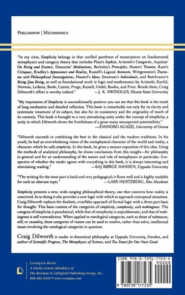 Simplicity presents a new, wide-ranging philosophical theory, one that concerns how reality is conceived. In so doing it also provides a new logic with which to approach conceptual situations. In this book, Craig Dilworth replaces the dualistic, true/false approach of formal logic with a three-part basis for thought. This basis consists of the categories of simplicity, complexity, and nothingness. The category of simplicity is paradoxical, while that of complexity is unproblematic, and that of nothingness is self-contradictory. When applied to ontological categories, such as those of substance, self, or causality, these categories of reason can resolve, rather than solve, intellectual issues. The notion of perspective is integral to the simplicity way of thinking. A particular entity-such as the self-may be conceived as simple in one perspective, while being complex or nothing in another. Combined with the categories of the simplicity theory, Dilworth uses the notion of perspective to reveal a type of conceptual conflict that differs from contradiction. So, for example, simplicity better represents the relation between competing scientific theories-such as the wave and particle theories of radiation-as a form of perspectival incompatibility. The book distinguishes between two forms of simplicity: analytic and synthetic, which can respectively be conceived of as a point and a whole. Again, the notion of perspective is employed: what is analytically simple in one perspective may well be synthetically simple in another. In this book, the simplicity way of thinking is applied to intellectual issues in philosophy, set theory, and physics. These applications show how simplicity can provide real insight into a wide variety of conceptually complex situations.