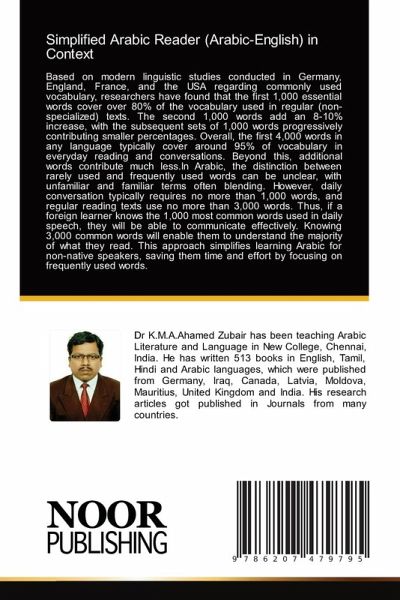 Based on modern linguistic studies conducted in Germany, England, France, and the USA regarding commonly used vocabulary, researchers have found that the first 1,000 essential words cover over 80% of the vocabulary used in regular (non-specialized) texts. The second 1,000 words add an 8-10% increase, with the subsequent sets of 1,000 words progressively contributing smaller percentages. Overall, the first 4,000 words in any language typically cover around 95% of vocabulary in everyday reading and conversations. Beyond this, additional words contribute much less.In Arabic, the distinction between rarely used and frequently used words can be unclear, with unfamiliar and familiar terms often blending. However, daily conversation typically requires no more than 1,000 words, and regular reading texts use no more than 3,000 words. Thus, if a foreign learner knows the 1,000 most common words used in daily speech, they will be able to communicate effectively. Knowing 3,000 common words will enable them to understand the majority of what they read. This approach simplifies learning Arabic for non-native speakers, saving them time and effort by focusing on frequently used words.