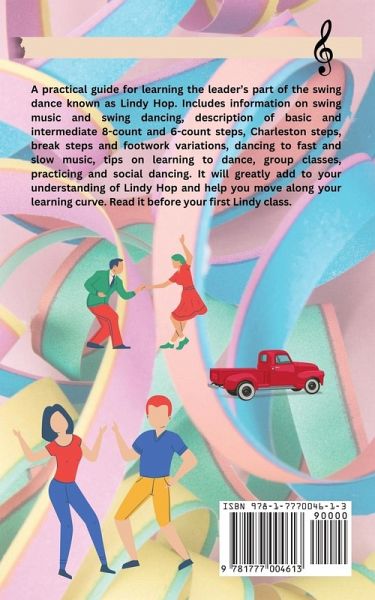 For the price of just one group class, this book is a practical guide for learning the leader's part of the swing dance known as Lindy Hop. Includes information on swing music and swing dancing, description of basic and intermediate 8-count and 6-count steps, Charleston steps, break steps and footwork variations, dancing to fast and slow music, tips on learning to dance, group classes, practicing and social dancing. It will greatly add to your understanding of Lindy Hop and help you move along the learning curve. Read it before your first Lindy class.