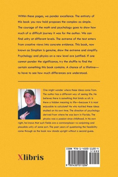 Within these pages, we ponder excellence. The entirety of this book you now hold proposes the complex as simple. The courage of the math and psychology goes to show how much of a difficult journey it was for the author. We can find unity at different levels. The extreme of the text enters from creative views into concrete evidence. This book, now known as Simplism is genuine, show the extreme and simplify. Psychology and physics on a new level are justified. If one cannot ponder the significance, try the shuffle to find the certain something this book contains. A chance of a lifetime-to have to see how much differences are understood.
