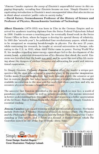 Albert Einstein (1879-1955) was born in Ulm in the German Empire and received his academic teaching diploma from the Swiss Federal Polytechnic School in 1900. Unable to secure a teaching post, he eventually found work in the Swiss Patent Office in Bern, where he began to develop his special theory of relativity. In 1905 (his "miracle year"), he published four revolutionary papers, which came to be recognized as stunning breakthroughs in physics. For the next 25 years, while continuing his research, he taught at several universities in Europe, relocating to the U.S. in 1933, when Adolf Hitler came to power. During World War II, his insights regarding mass-energy equivalence led to the development of the atomic bomb, a practical demonstration of his theories that shook the world. Einstein was horrified that the bomb was used, and he spent the rest of his life warning about the dangers of nuclear weapons and advocating for peace and international cooperation. In Simply Einstein, Professor Jimena Canales offers the reader a unique perspective on the man who occupies a singular place in the popular imagination. Unlike many Einstein biographies, her book does not glorify the scientist or get lost in esoteric details, but takes pains to present a straightforward, thoroughly readable introduction to the man and his work that shows just how and why an eccentric physicist became a household name. The universe that Einstein described is the one in which we now live, a world of paradoxes and uncertainty, as well as infinite possibility. For anyone interested in better understanding how this came to be-and in gaining a fuller appreciation of the brilliant, flawed human being who changed everything-Simply Einstein is essential reading.
