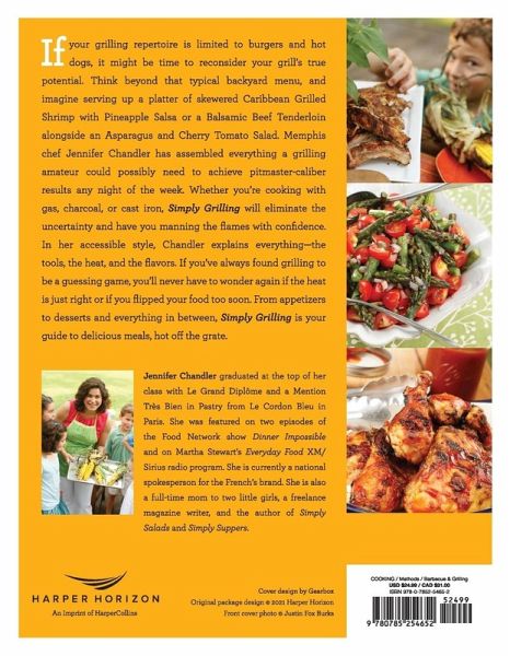 If your grilling repertoire is limited to burgers and hot dogs, it might be time to reconsider your grill's true potential. Jennifer Chandler helps you reimagine grilled meals in this easy-to-follow, quick and simple cookbook. Memphis chef Jennifer Chandler has assembled everything a grilling amateur could possibly need to achieve pitmaster caliber results any night of the week. Whether you're cooking with gas, charcoal, or cast iron, Simply Grilling will eliminate the uncertainty and have you manning the flames with confidence. In Simply Grilling, Chandler shares delicious recipes including: * Caribbean Grilled Shrimp with Pineapple Salsa * Balsamic Beef Tenderloin * Asparagus and Cherry Tomato Salad * Grilled Tuna with Orange and Fennel Slaw * Blackened Snapper Po-Boy In her accessible style, Chandler explains everything--the tools, the heat, and the flavors. If you've always found grilling to be a guessing game, you'll never have to wonder again if the heat is just right or if you flipped your food too soon. From appetizers to desserts and everything in between, Simply Grilling is your guide to delicious meals, hot off the grate.