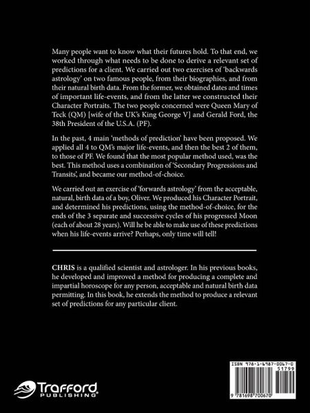 Many people want to know what their futures hold. To that end, we worked through what needs to be done to derive a relevant set of predictions for a client. We carried out two exercises of 'backwards astrology' on two famous people, from their biographies, and from their natural birth data. From the former, we obtained dates and times of important life-events, and from the latter we constructed their Character Portraits. The two people concerned were Queen Mary of Teck (QM) [wife of the UK's King George V] and Gerald Ford, the 38th President of the U.S.A. (PF). In the past, 4 main 'methods of prediction' have been proposed. We applied all 4 to QM's major life-events, and then the best 2 of them, to those of PF. We found that the most popular method used, was the best. This method uses a combination of 'Secondary Progressions and Transits', and became our method-of-choice. We carried out an exercise of 'forwards astrology' from the acceptable, natural, birth data of a boy, Oliver. We produced his Character Portrait, and determined his predictions, using the method-of-choice, for the ends of the 3 separate and successive cycles of his progressed Moon (each of about 28 years). Will he be able to make use of these predictions when his life-events arrive? Perhaps, only time will tell!