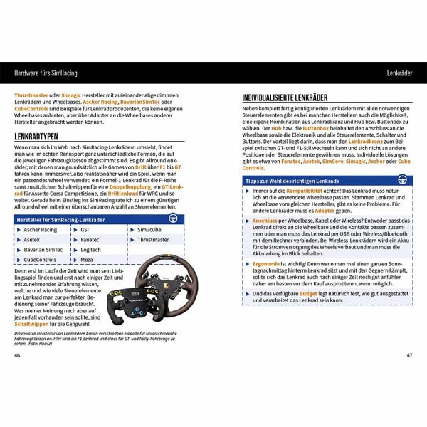 Aus dem Inhalt: Geschichte des SimRacing SimRacing - Spiel oder Sport? Welche SimRacing-Titel gibt es? iRacing, RaceRoom, Assetto Corsa (inkl. Competizione & EVO), LeMans Ultimate, Automobilista 2 und mehr Empfehlungen zu Hardware Die ersten Runden: Trainingstipps Die SimRacing-Community Datenanalyse wie die Profis Grundlagen des Fahrzeug-Setups Online-Racing: so klappt der Einstieg Trends und Zukunft - KI, neue Games