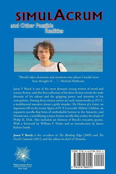 "[Brock] takes characters and situations into places I would never have thought of . . ."-Richard Matheson Jason V Brock is one of the most dynamic young writers of weird and science fiction, and this first collection of his short fiction reveals the wide diversity of his talents and the gripping power and intensity of his conceptions. Among these sixteen stories are such masterworks as "P.O.V.," a multilayered narrative about a grisly murder; "The History of a Letter," an ingenious riff on the iconic figure of H. P. Lovecraft; "Milton's Children," an expansive novella that hints of unthinkable horrors in the Antarctic; and "Simulacrum," a scintillating science fiction novella that evokes the shade of Philip K. Dick. Also included are thirteen of Brock's evocative poems. With a foreword by William F. Nolan and an introduction by James Robert Smith. Jason V Brock has been widely published in magazines, comics, and anthologies such as Butcher Knives & Body Counts, Animal Magnetism, Fangoria, the Weird Fiction Review, S. T. Joshi's Black Wings anthology series, Like Water for Quarks, and many others.