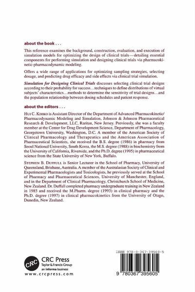 Providing more than just a comprehensive history, critical vocabulary, insightful compilation of motivations, and clear explanation of the state-of-the-art of modern clinical trial simulation, this book supplies a rigorous framework for employing simulation as an experiment, according to a predefined simulation plan, that reflects good simulation practices. The book discusses how to design clinical trials according to their probability for success, techniques to define distributions of virtual subjects' characteristics, methods to determine the sensitivity of the trial design, and the population relationship between dosing schedules and patient response.