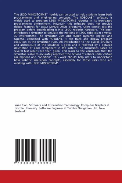 The LEGO MINDSTORMS(TM) toolkit can be used to help students learn basic programming and engineering concepts. The ROBOLAB(TM) software is widely used to program LEGO MINDSTORMS robotics in its icon-based programming environment. However, this software does not provide debug features for LEGO MINDSTORMS programs. Users cannot test the program before downloading it into LEGO robotics hardware. This book introduces a simulator to simulate the motions of LEGO robotics in a virtual 3D environment. The simulator uses ODE (Open Dynamic Engine) and OpenGL, combined with ROBOLAB. It can track and display program execution as the simulation runs. An introduction to the overall structure and architecture of the simulator is given and is followed by a detailed description of each component in the system. The discussions based on several test results are then given. This leads to the conclusion that the simulator is able to accurately represent the actions of robots under certain assumptionsand conditions. This work should help users to understand basic robotic simulation concepts, especially for those users who are working with LEGO MINDSTORMS.
