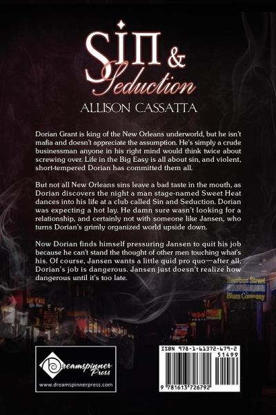 Dorian Grant is king of the New Orleans underworld, but he isn't mafia and doesn't appreciate the assumption. He's simply a crude businessman anyone in his right mind would think twice about screwing over. Life in the Big Easy is all about sin, and violent, short-tempered Dorian has committed them all. But not all New Orleans sins leave a bad taste in the mouth, as Dorian discovers the night a man stage-named Sweet Heat dances into his life at a club called Sin and Seduction. Dorian was expecting a hot lay. He damn sure wasn't looking for a relationship, and certainly not with someone like Jansen, who turns Dorian's grimly organized world upside down. Now Dorian finds himself pressuring Jansen to quit his job because he can't stand the thought of other men touching what's his. Of course, Jansen wants a little quid pro quo-after all, Dorian's job is dangerous. Jansen just doesn't realize how dangerous until it's too late.