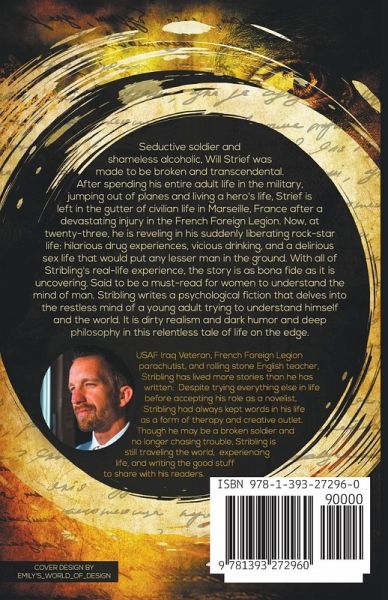 Will Strief has just fallen from the sky… Literally. He is no angel. He is a parachutist for the infamous French Foreign Legion, or he was until one bad jump leaves him shattered: physically, mentally, and spiritually. After a life in the military, jumping out of planes, and living a hero's tale, the twenty-three-year-old Will finds himself floating about in the social gutters of Marseille, France. Despite his limp, he is reveling in his sudden liberation and rock-star life: hilarious drug experiences, vicious drinking, and a delicious sex life that would gorge a lesser being. Yet, all he wants is to find some meaning in life. Is it found in romantic love? Silent meditation under the Bodhi Tree? Or climbing the Himalayas? Will must find the balance between 'Sin' and 'Zen'. And through it all, he explores the idea of romance, lust, trust, friendship, and peace in a raw and realistic tone while living life at its ill-defined edge. It is a fast-paced transgressive fiction that delves into the mind of a restless man trying to navigate an unplanned, but ultimately revealing, journey. Just jump and hang on for the ride.