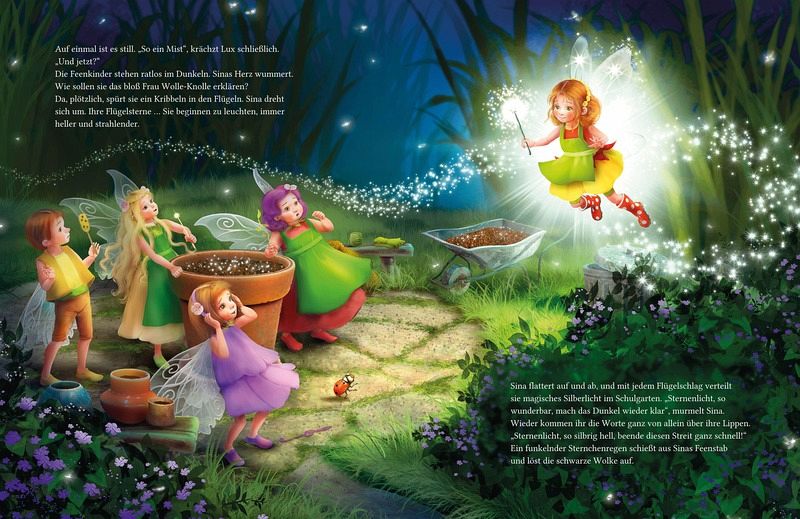 Morgen ist die große Zauberstunde in der Feenwaldschule: Sina Sternenflügel und ihre Freundinnen sollen gemeinsam ein Rezept für eine neue Zauberblume erfinden. Ganz ohne Hilfe! Lala Liederfee wünscht sich eine singende Blume, Clara Sonnenfee möchte lieber eine leuchtende Blume. Jede von ihnen kennt ein gutes Zauberrezept. Nur Sinas Zauber will sich einfach nicht zeigen. Doch dann, als alle anderen kleinen Feen eifrig durcheinanderzaubern, wird die Feenschule mit einem Knall in eine dunkle Wolke gehüllt. Kann Sina mit ihren magischen Sternenflügeln helfen?