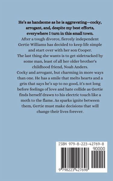 He's as handsome as he is aggravating-cocky, arrogant, and, despite my best efforts, everywhere I turn in this small town. After a tough divorce, fiercely independent Gertie Williams has decided to keep life simple and start over with her son Cooper. The last thing she wants is to get sidetracked by some man, least of all her older brother's childhood friend, Noah Anders. Cocky and arrogant, but charming in more ways than one. He has a smile that melts hearts and a grin that says he's up to no good, it's not long before feelings of love and hate collide as Gertie finds herself drawn to his electric touch like a moth to the flame. As sparks ignite between them, Gertie must make decisions that will change their lives forever.