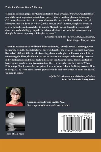 "Suzanne Edison's gorgeously lyrical collection Since the House Is Burning understands one of the most important principles of poetry: that it first be a pleasure in language. Of course, these are often bittersweet pleasures, if a poet is willing to tell the truth of her experience as Edison does here (in this case, as a wife, mother, daughter; as citizen of a world on fire and a caretaker to many). Musically adept, formally precise, both clear eyed and unfailingly empathetic in its worldview, it's a beautiful book-one any thoughtful reader of poetry will be glad to know." -Erin Belieu, author of Come-Hither, Honeycomb, from Copper Canyon Press "Suzanne Edison's smart and lavish debut collection, Since the House Is Burning, never turns away from the harsh totality of our world; rather she treats us to poems that 'open like a slash of flesh.' Whether she is writing about her daughter's illness or the wildfires consuming the West, she illuminates the intricacies and complex relationships between individual sickness and the collective disease of the Anthropocene. This is a collection based on science, love, and keen attention. This is a voice that can be trusted. When Edison says, 'But I am not here to grieve. I want to know/ about the living to come. How to navigate//by scent. How the tree grows around a nail/ into which its point has bitten,' we need to listen." -Julia B. Levine, author of Ordinary Psalms, from the Barataria Poetry Series