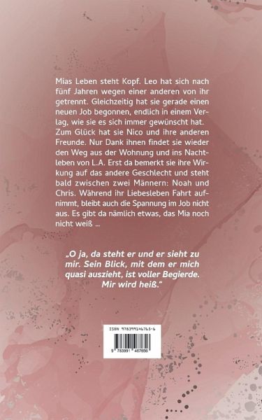 Mias Leben steht Kopf. Leo hat sich nach fünf Jahren wegen einer anderen von ihr getrennt. Gleichzeitig hat sie gerade einen neuen Job begonnen, endlich in einem Verlag, wie sie es sich immer gewünscht hat.Zum Glück hat sie Nico und ihre anderen Freunde. Nur Dank ihnen findet sie wieder den Weg aus der Wohnung und ins Nachtleben von L.A. Erst da bemerkt sie ihre Wirkung auf das andere Geschlecht und steht bald zwischen zwei Männern: Noah und Chris. Während ihr Liebesleben Fahrt aufnimmt, bleibt auch die Spannung im Job nicht aus. Es gibt da nämlich etwas, das Mia noch nicht weiß ..."O ja, da steht er und er sieht zu mir. Sein Blick, mit dem er mich quasi auszieht, ist voller Begierde. Mir wird heiß."