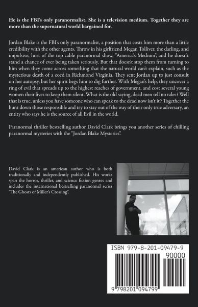 He is the FBI's only paranormalist. She is a television medium. Together they are more than the supernatural world bargained for. Jordan Blake is the FBI's only paranormalist, a position that costs him more than a little credibility with the other agents. Throw in his girlfriend Megan Tolliver, the darling, and impulsive, host of the top cable paranormal show, "America's Medium", and he doesn't stand a chance of ever being taken seriously. But that doesn't stop them from turning to him when they come across something that the natural world can't explain, such as the mysterious death of a coed in Richmond Virginia. They sent Jordan up to just consult on her autopsy, but her spirit begs him to dig further. With Megan's help, they uncover a ring of evil that spreads up to the highest reaches of government, and cost several young women their lives to keep them silent. What is the old saying, dead men tell no tales? Well that is true, unless you have someone who can speak to the dead now isn't it? Together the hunt down those responsible and try to stay out of the way of their only true adversary, an entity who says he is the source of all Evil in the world. Paranormal thriller bestselling author David Clark brings you another series of chilling paranormal mysteries with the "Jordan Blake Mysteries".