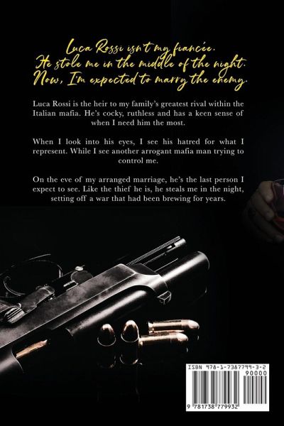 Luca Rossi isn't my fiancé. He stole me in the middle of the night. Now, I'm expected to marry the enemy. Luca Rossi is the heir to my family's greatest rival within the Italian mafia. He's cocky, ruthless and has a keen sense of when I need him the most. When I look into his eyes, I see his hatred for what I represent. While I see another arrogant mafia man trying to control me. On the eve of my arranged marriage, he's the last person I expect to see. Like the thief he is, he steals me in the night, setting off a war that had been brewing for years. This is a full-length standalone novel.