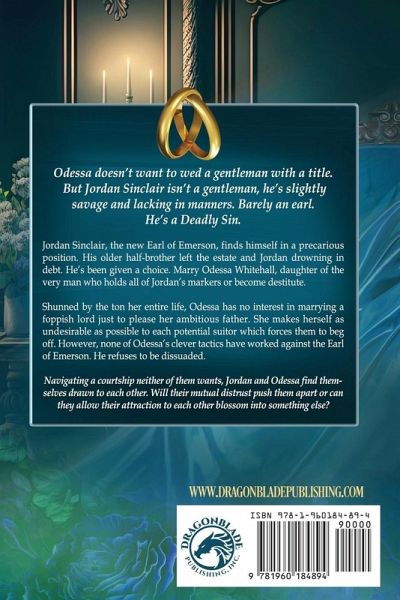 Odessa doesn't want to wed a gentleman with a title. But Jordan Sinclair isn't a gentleman, he's slightly savage and lacking in manners. Barely an earl. He's a Deadly Sin. Jordan Sinclair, the new Earl of Emerson, finds himself in a precarious position. His older half-brother left the estate and Jordan drowning in debt. He's been given a choice. Marry Odessa Whitehall, daughter of the very man who holds all of Jordan's markers or become destitute. Shunned by the ton her entire life, Odessa has no interest in marrying a foppish lord just to please her ambitious father. She makes herself as undesirable as possible to each potential suitor which forces them to beg off. However, none of Odessa's clever tactics have worked against the Earl of Emerson. He refuses to be dissuaded. Navigating a courtship neither of them wants, Jordan and Odessa find themselves drawn to each other. Will their mutual distrust push them apart or can they allow their attraction to each other blossom into something else? Sinfully Wed is the first in a steamy new series titled The Five Deadly Sins. The Five Deadly Sins Sinfully Wed Sinfully Tempted Sinfully Mine Sinfully Yours Sinfully Wanton