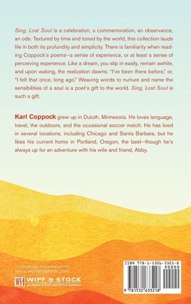 Sing, Lost Soul is a celebration, a commemoration, an observance, an ode. Textured by time and toned by the world, this collection lauds life in both its profundity and simplicity. There is familiarity when reading Coppock's poems--a sense of experience, or at least a sense of perceiving experience. Like a dream, you slip in easily, remain awhile, and upon waking, the realization dawns: "I've been there before," or, "I felt that once, long ago." Weaving words to nurture and name the sensibilities of a soul is a poet's gift to the world. Sing, Lost Soul is such a gift.