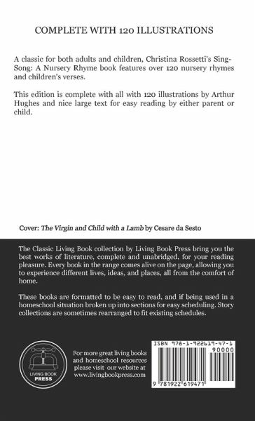 A classic book of rhymes for children, this collection features over 120 nursery rhymes and children's verses. Complete with all 120 illustrations by Arthur Hughes alongside nice large text for easy reading by either parent or child, this edition is sure to be a treasure for years to come.