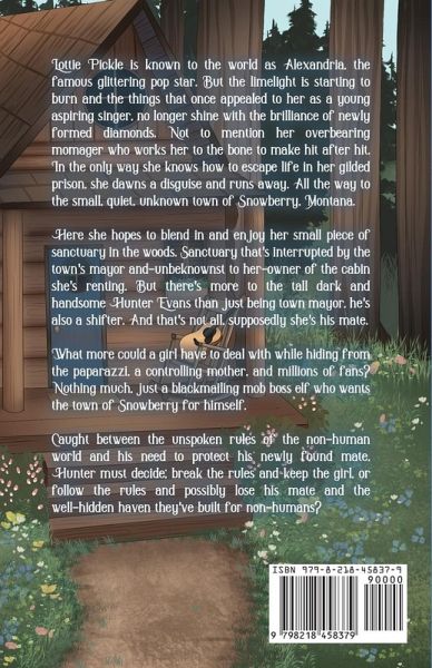 Lottie Pickle is known to the world as Alexandria, the famous glittering pop star. But the limelight is starting to burn and the things that once appealed to her as a young aspiring singer no longer shine with the brilliance of newly formed diamonds. Not to mention her overbearing momager who works her to the bone to make hit after hit. In the only way she knows how to escape life in her gilded prison she dawns a disguise and runs away. All the way to the small, quiet, unknown town of Snowberry, Montana. Here she hopes to blend in and enjoy her small piece of sanctuary in the woods. Sanctuary that's interrupted by the town's mayor and-unbeknownst to her-owner of the cabin she's renting. But there's more to the tall dark and handsome Hunter Evans than just being town mayor, he's also a wolf shifter. And that's not all, supposedly she's his mate. What more could a girl have to deal with while hiding from the paparazzi, a controlling mother, and millions of fans? Nothing much, just a blackmailing mob boss elf who wants the town of Snowberry for himself. Caught between the unspoken rules of the non-human world and his need to protect his newly found mate, Hunter must decide; break the rules and keep the girl, or follow the rules and possibly lose his mate and the well-hidden haven they've built for non-humans? Contains sexually explicit content intended for adults 18+ for full list of content warnings please visit Rebecca's web site at www.rebeccarennickauthor.comThis is book one in a series of interconnected standalones and does not have to be read in order but it is suggested.