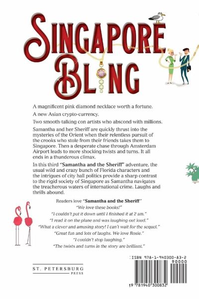 A magnificent pink diamond necklace worth a fortune. A secretive new Asian crypto-currency. And two smooth-talking international con artists who abscond with millions. Samantha and her Sheriff are quickly thrust into the mystery and history of Southeast Asia when their relentless pursuit of the crooks who stole from their friends takes them to Singapore. Then a desperate chase through the Amsterdam Airport leads to more shocking twists in this exciting story. The result is a thunderous climax to Singapore Bling. In Gord Hume's third "Samantha and the Sheriff" adventure, riotous humor combines with thrilling action and adventure. The usual wild and crazy bunch of Florida characters and the intrigues of city hall politics provide a sharp contrast to the rigid society of Singapore as Samantha navigates the treacherous waters of international crime. Laughs and thrills abound as she and the Sheriff risk all to recover their friends' lost treasures. Richly drawn characters and an intriguing storyline combine to make Singapore Bling a wonderful read.