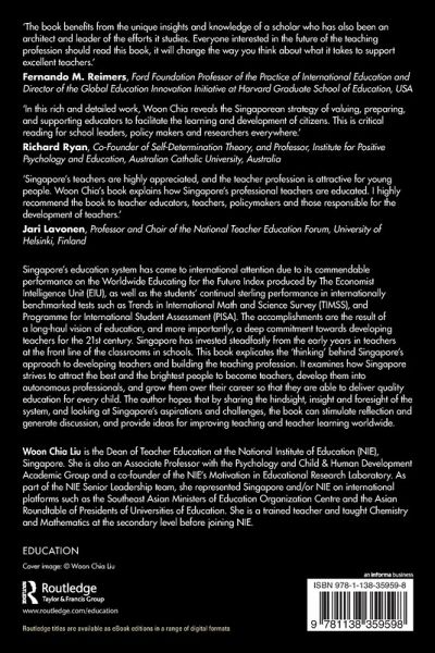Singapore's education system has come to international attention due to its commendable performance on the Worldwide Educating for the Future Index produced by The Economist Intelligence Unit (EIU), as well as the students' continual sterling performance in internationally benchmarked tests such as Trends in International Math and Science Survey (TIMSS), and Programme for International Student Assessment (PISA). The accomplishments are the result of a long-haul vision of education, and more importantly, a deep commitment towards developing teachers for the 21st century. Singapore has invested steadfastly from the early years in teachers at the front line of the classrooms in schools. This book explicates the 'thinking' behind Singapore's approach to developing teachers and building the teaching profession. It examines how Singapore strives to attract the best and the brightest people to become teachers, develop them into autonomous professionals, and grow them over their career so that they are able to deliver quality education for every child. The author hopes that by sharing the hindsight, insight and foresight of the system, and looking at Singapore's aspirations and challenges, the book can stimulate reflection and generate discussion, and provide ideas for improving teaching and teacher learning worldwide.