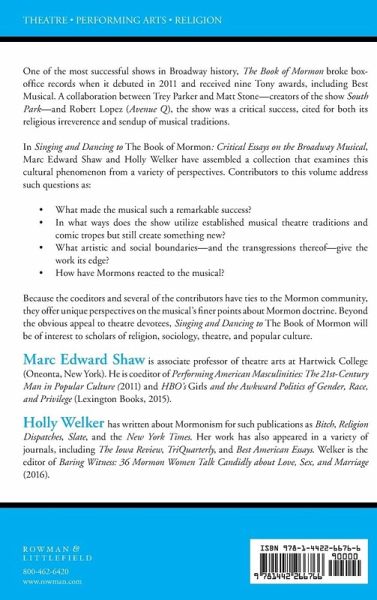 Singing and Dancing to The Book of Mormon examines a cultural phenomenon, asking: What made The Book of Mormon such a success? In what ways does the work utilize established artistic traditions (musical theatre, comic tropes), but revise them to create something new? What cultural buttons does the work push in religion and world affairs? What artistic and social boundaries—and the transgression of those boundaries—give the work its edge? What is the effect of the work on particular audiences: in the theatre, in academia, in religious/Mormon studies, and beyond?