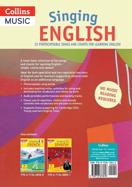 A must-have collection of fun new songs and chants for practising vocabulary and phrases when learning English. Ideal for those learning English as an additional or second language in the UK and anyone learning English abroad. Singing English ? A must-have collection of fun new songs and chants for practising vocabulary and phrases when learning English. Ideal for those learning English as an additional or second language in the UK and anyone learning English abroad. These catchy songs and chants help pupils memorise words and phrases. Intended for 7-11 year olds but the upbeat backing tracks will appeal to all. Each song and chant includes teaching activities providing fun and exciting ways to develop language and photocopiable song lyrics.