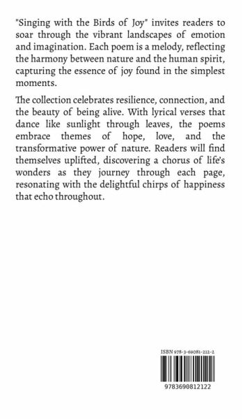 "Singing with the Birds of Joy" invites readers to soar through the vibrant landscapes of emotion and imagination. Each poem is a melody, reflecting the harmony between nature and the human spirit, capturing the essence of joy found in the simplest moments. The collection celebrates resilience, connection, and the beauty of being alive. With lyrical verses that dance like sunlight through leaves, the poems embrace themes of hope, love, and the transformative power of nature. Readers will find themselves uplifted, discovering a chorus of life's wonders as they journey through each page, resonating with the delightful chirps of happiness that echo throughout.
