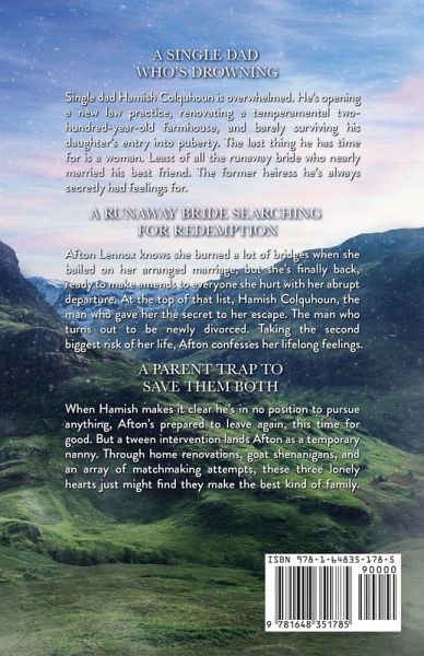 A single dad who's drowning Single dad Hamish Colquhoun is overwhelmed. He's opening a new law practice, renovating a temperamental two-hundred-year-old farmhouse, and barely surviving his daughter's entry into puberty. The last thing he has time for is a woman. Least of all the runaway bride who nearly married his best friend. The former heiress he's always secretly had feelings for. A runaway bride searching for redemption Afton Lennox knows she burned a lot of bridges when she bailed on her arranged marriage, but she's finally back, ready to make amends to everyone she hurt with her abrupt departure. At the top of that list, Hamish Colquhoun, the man who gave her the secret to her escape. The man who turns out to be newly divorced. Taking the second biggest risk of her life, Afton confesses her lifelong feelings. A parent trap to save them both When Hamish makes it clear he's in no position to pursue anything, Afton's prepared to leave again, this time for good. But a tween intervention lands Afton as a temporary nanny. Through home renovations, goat shenanigans, and an array of matchmaking attempts, these three lonely hearts just might find they make the best kind of family.