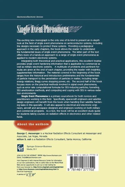This monograph is written for neophytes, students, and practitioners to aid in their understanding of single event phenomena. It attempts to collect the highlights as well as many of the more detailed aspects of this field into an entity that portrays the theoretical as well as the practical applications of this subject. Those who claim that "theory" is not for them can skip over the earlier chapters dealing with the fundamental and theoretical portions and find what they need in the way of hands-on guidelines and pertinent formulas in the later chapters. Perhaps, after a time they will return to peruse the earlier chapters for a more complete rendition and appreciation of the subject matter. It is felt that the reader should have some acquaintance with the electronics of semiconductors and devices, some broad atomic physics introduction, as well as a respectable level of mathematics through calculus, including simple differential equations. A large part of the preceding can be obtained informally, through job experience, self-study, evening classes, as well as from a formal college curriculum.