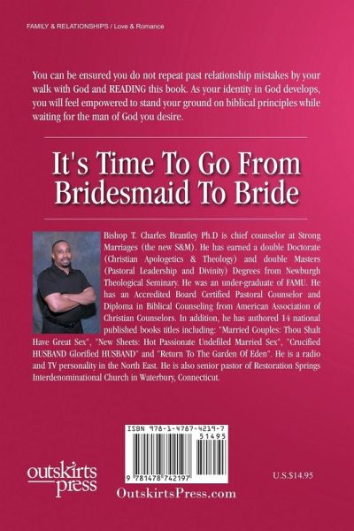 IT'S TIME TO GO FROM BRIDESMAID TO BRIDE ... THOU SHALT'S for DATING as you await your Husband-to-Be. You can be ensured you do not repeat past relationship mistakes by your walk with God and READING this book. As your identity in God develops, you will feel empowered to stand your ground on biblical principles while waiting for the man of God you desire.