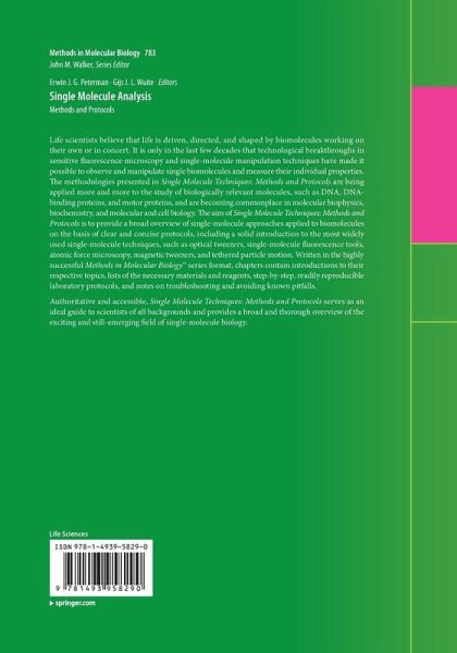 Life scientists believe that life is driven, directed, and shaped by biomolecules working on their own or in concert. It is only in the last few decades that technological breakthroughs in sensitive fluorescence microscopy and single-molecule manipulation techniques have made it possible to observe and manipulate single biomolecules and measure their individual properties. The methodologies presented in Single Molecule Techniques: Methods and Protocols are being applied more and more to the study of biologically relevant molecules, such as DNA, DNA-binding proteins, and motor proteins, and are becoming commonplace in molecular biophysics, biochemistry, and molecular and cell biology. The aim of Single Molecule Techniques: Methods and Protocols is to provide a broad overview of single-molecule approaches applied to biomolecules on the basis of clear and concise protocols, including a solid introduction to the most widely used single-molecule techniques, such as optical tweezers, single-molecule fluorescence tools, atomic force microscopy, magnetic tweezers, and tethered particle motion. Written in the highly successful Methods in Molecular Biology(TM) series format, chapters contain introductions to their respective topics, lists of the necessary materials and reagents, step-by-step, readily reproducible laboratory protocols, and notes on troubleshooting and avoiding known pitfalls.