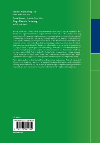 The last fifteen years have witnessed the birth and maturation of many original methods and the development of protocols specific to single molecule measurements and their analysis, including techniques involving optical imaging, electron microscopy, optical and magnetic trapping, and developments in atomic force microscopy. In Single Molecule Enzymology: Methods and Protocols, experts in the field provide procedures which enable the extraction of detailed information about enzyme work cycles, their static and kinetic properties, and information about their location and activity within cells. The detailed volume offers practical advice on many aspects of single molecule enzymology and includes strategic overviews of interconnected methods involved in sample preparation, single molecule measurements, and data analysis. Written in the highly successful Methods in Molecular Biology(TM) series format, chapters contain introductions to their respective topics, lists of the necessary materials and reagents, step-by-step, readily reproducible laboratory protocols, and tips on troubleshooting and avoiding known pitfalls.