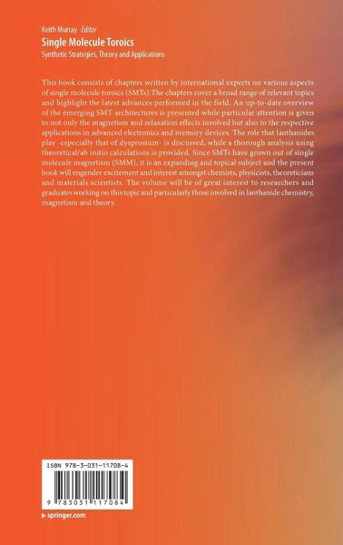 Introduction to Single Molecule Toroics.- Mixed d-f Block Single Molecule Toroics.- Single Molecule Toroics: Design and Synthetic Strategies.- Rationalization of Room-Temperature Single-Molecule Toroics via Exchange Coupling.- Spin-electric coupling, magnetoelectricity, and quantum dynamics of toroidal moment in lanthanide-based single molecule toroics.- Quantum Toroidicity in Single-molecule Toroics: A Unifying Model based on Heisenberg Spin Rings.