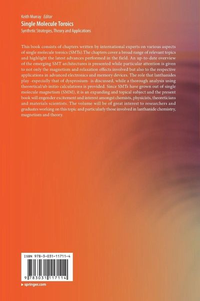Introduction to Single Molecule Toroics.- Mixed d-f Block Single Molecule Toroics.- Single Molecule Toroics: Design and Synthetic Strategies.- Rationalization of Room-Temperature Single-Molecule Toroics via Exchange Coupling.- Spin-electric coupling, magnetoelectricity, and quantum dynamics of toroidal moment in lanthanide-based single molecule toroics.- Quantum Toroidicity in Single-molecule Toroics: A Unifying Model based on Heisenberg Spin Rings.