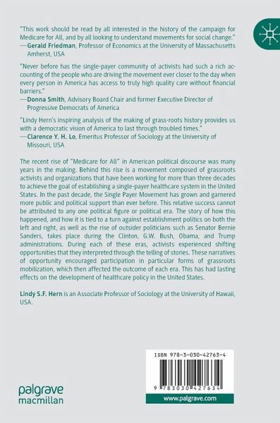 The recent rise of "Medicare for All" in American political discourse was many years in the making. Behind this rise is a movement composed of grassroots activists and organizations that have been working for more than three decades to achieve the goal of establishing a single-payer healthcare system in the United States. In the past decade, the Single Payer Movement has grown and garnered more public and political support than ever before. This relative success cannot be attributed to any one political figure or political era. The story of how this happened, and how it is tied to a turn against establishment politics on both the left and right, as well as the rise of outsider politicians such as Senator Bernie Sanders, takes place during the Clinton, G.W. Bush, Obama, and Trump administrations. During each of these eras, activists experienced shifting opportunities that they interpreted through the telling of stories. These narratives of opportunity encouraged participationin particular forms of grassroots mobilization, which then affected the outcome of each era. This has had lasting effects on the development of healthcare policy in the United States. In this book, Hern conducts a political ethnographic analysis in which she uses historical records, interviews, and participant observation to tell the story of the Single Payer Movement, establish the lessons that can be learned from this history, and develop a framework-the Environment of Opportunity Model-that involves a holistic understanding of social movement activity through the analysis of narrative practice.