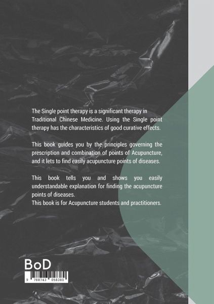 The Single point therapy is a significant therapy in Traditional Chinese Medicine. Using the Single point therapy has the characteristics of good curative effects. This book guides you by the principles governing the prescription and combination of points of Acupuncture, and it lets to find easily acupuncture points of diseases.This book tells you and shows you easily understandable explanation for finding the acupuncture points of diseases.This book is for Acupuncture students and practitioners.