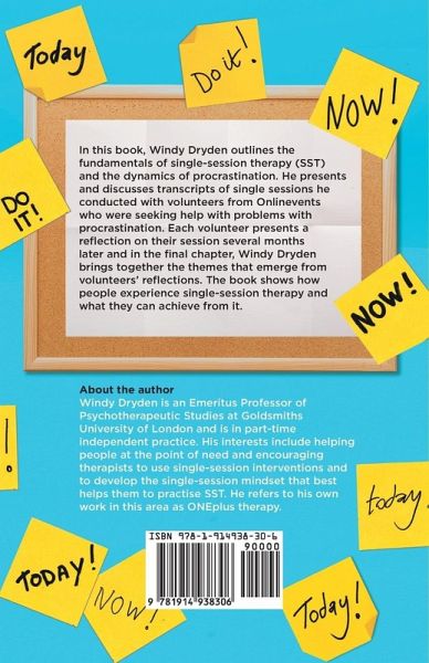 In this book, Windy Dryden outlines the fundamentals of single-session therapy (SST) and the dynamics of procrastination. He presents and discusses transcripts of single sessions he conducted with volunteers from Onlinevents who were seeking help with problems with procrastination. Each volunteer presents a reflection on their session several months later and in the final chapter, Windy Dryden brings together the themes that emerge from volunteers' reflections. The book shows how people experience single-session therapy and what they can achieve from it.